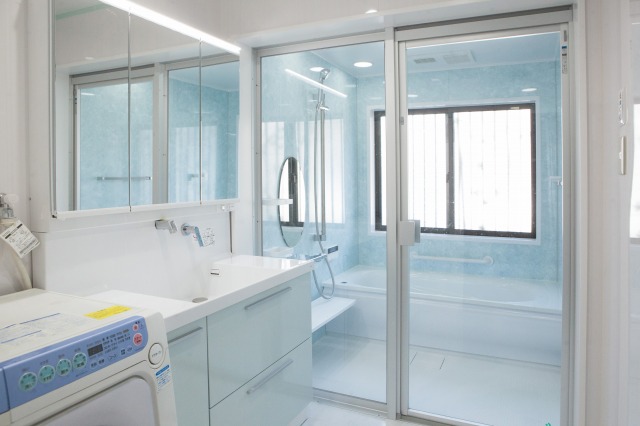 浴室を少し増築し、既設より大きめの